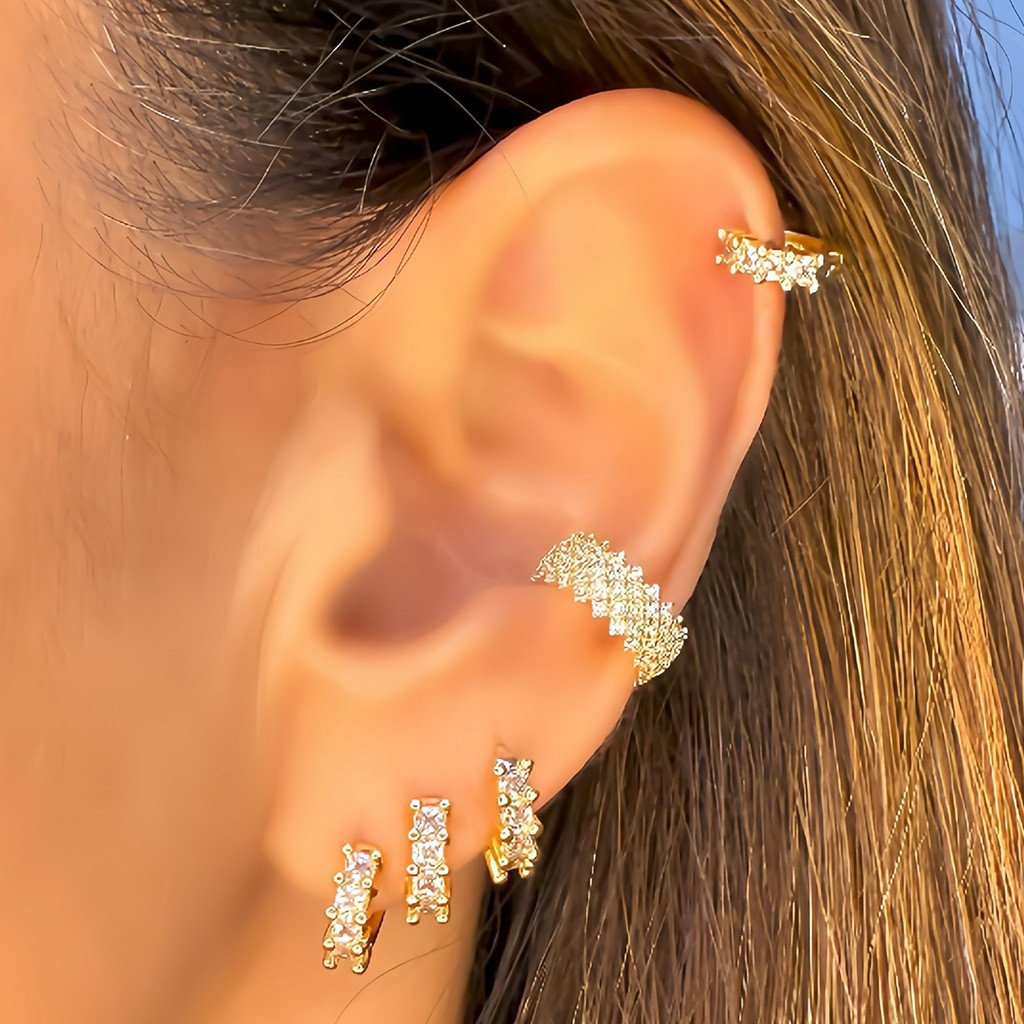 Piercing de Orelha de Argolinha Dourada com Zircônias - 6ORE1044