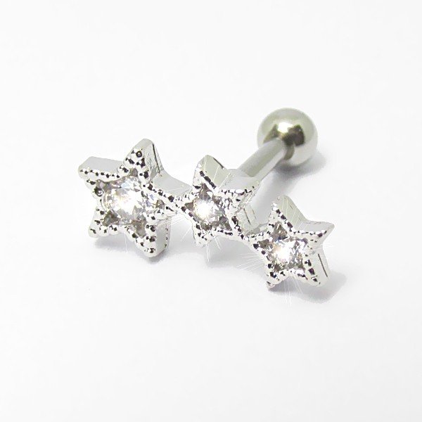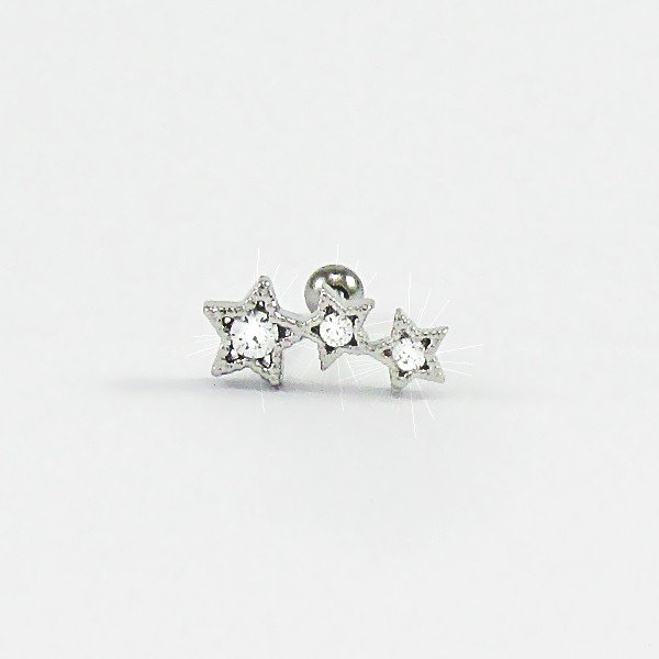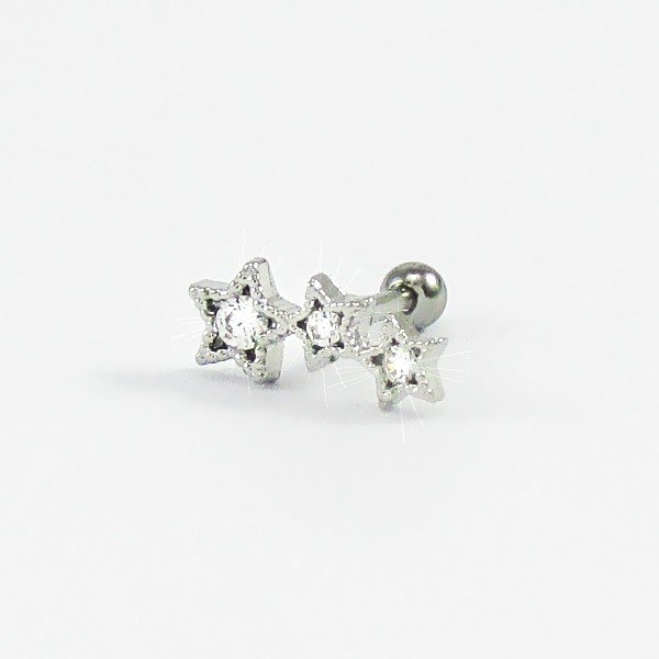 Piercing Cluster em Aço Cirúrgico com 3 delicadas estrelinhas com cristais.