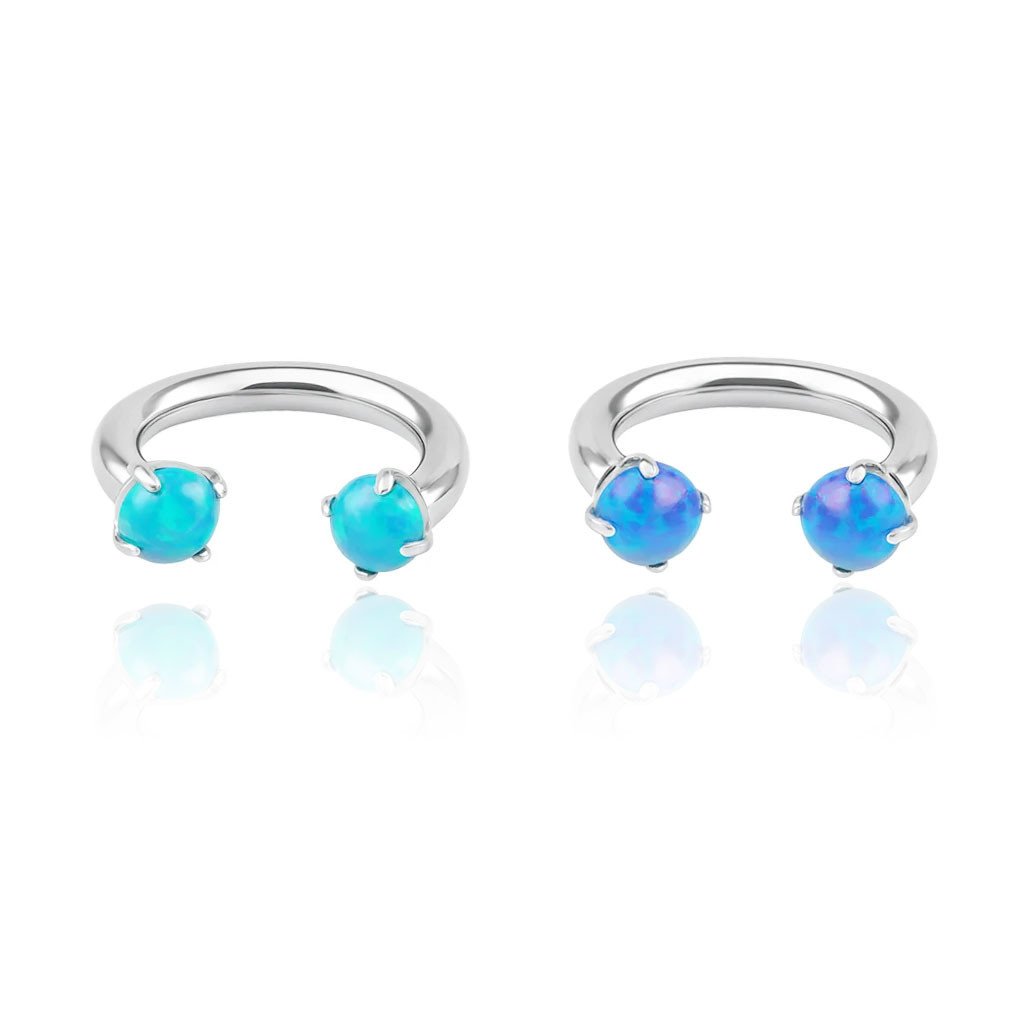 Piercing tipo Ferradura em Titânio com duas Pedras Opalas com rosca interna.